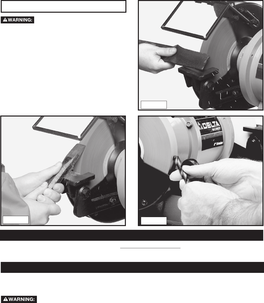 closer to the grinding wheel. Always maintain a distance